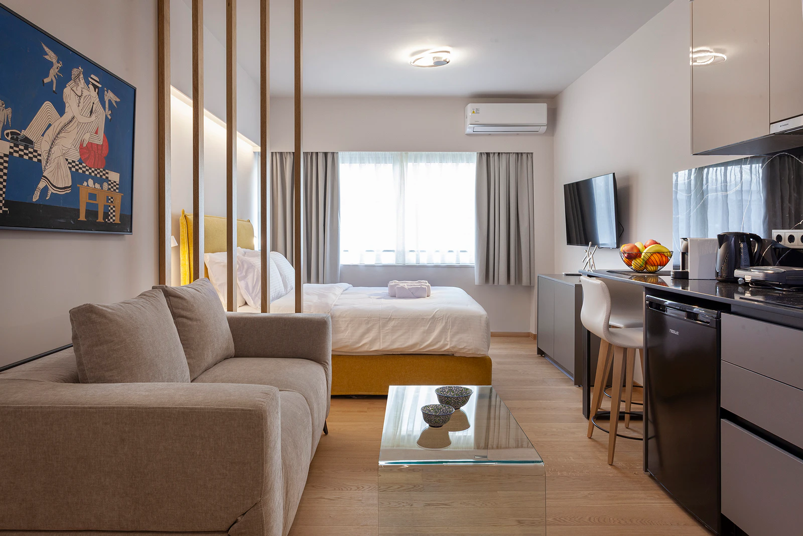 Experience Deluxe Living in the absolute heart of the Greek capital with our beautifully appointed, compact 29m² apartment in Athens city center. Designed for discerning travellers, this premium studio offers comfort and style for 2 to 4 guests (ideal for couples, small families, or friends). The apartment's prime location is just a stone's throw from the iconic Syntagma Square and the Hellenic Parliament, where you can witness the famous Changing of the Guard. Spend less time commuting and more time exploring: the Acropolis of Athens, the charming, historic neighborhood of Plaka, the ancient Temple of Olympian Zeus, and the high-end shops of Ermou Street are all easily walkable. Enjoy a truly relaxing stay with luxury amenities including high-speed free Wi-Fi, a smart TV, premium linens, and a fully-equipped kitchenette. Despite its central position, our deluxe 29sqm space is a peaceful retreat after a day of sightseeing. With the Syntagma Metro Station nearby, travel to and from the airport is effortless. For a memorable and convenient short-term rental at the epicenter of Athens' most famous attractions, look no further. Book your upscale Athenian adventure today!